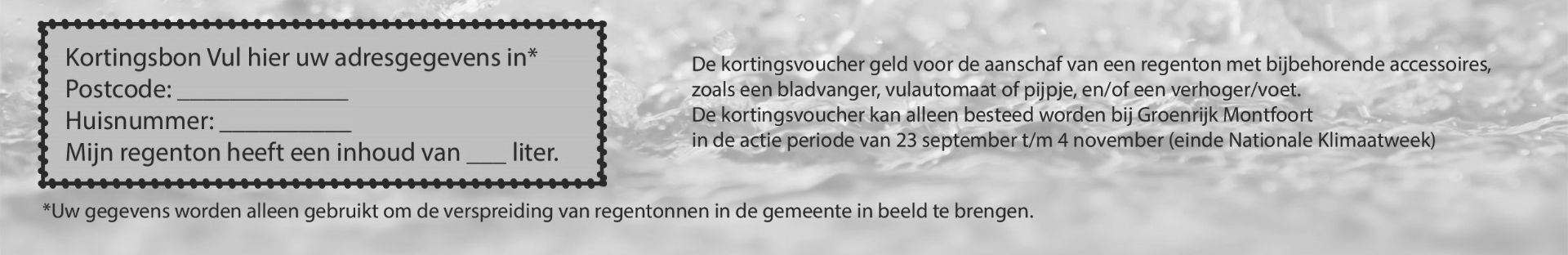 Wij hebben weer een mooie actie: 40% korting op een regenton en toebehoren, exclusief voor inwoners van de gemeente Montfoort.