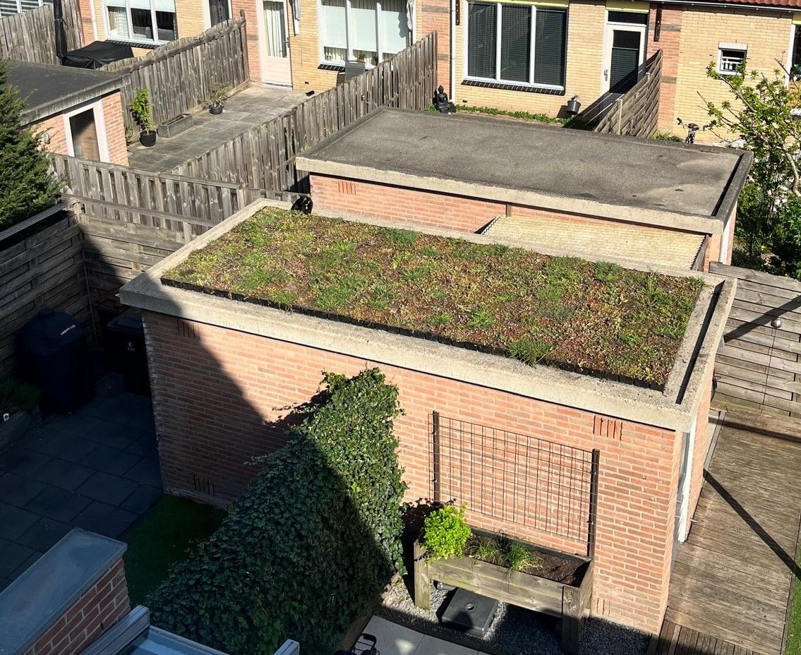 Een groen dak geeft een grote bijdrage aan de biodiversiteit en draagt positief bij aan het klimaat. Het geeft ook verkoeling in de zomer en niet te vergeten: het uitzicht op je dak is een stuk aangenamer, met al het leven dat hierop afkomt!